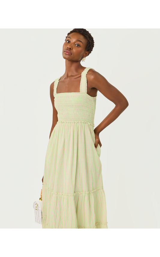 Hadly Smocked Maxi Dress Pistachio Macaron X Conch Shell Pink