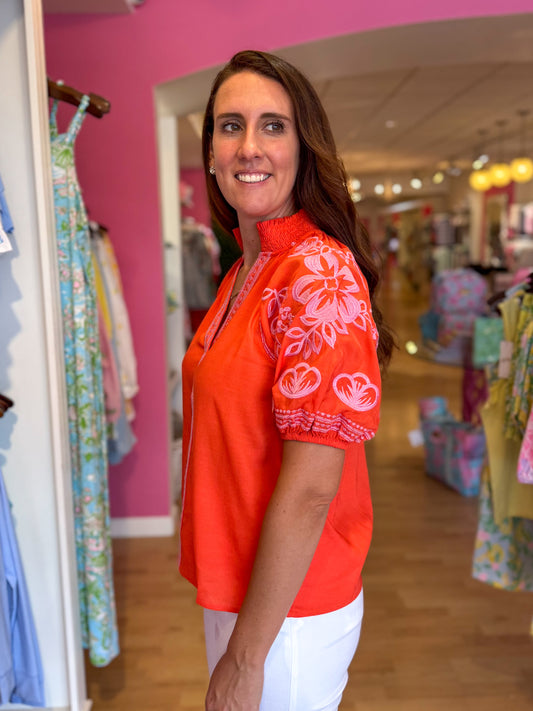 Sylvia Orange Embroidered Top