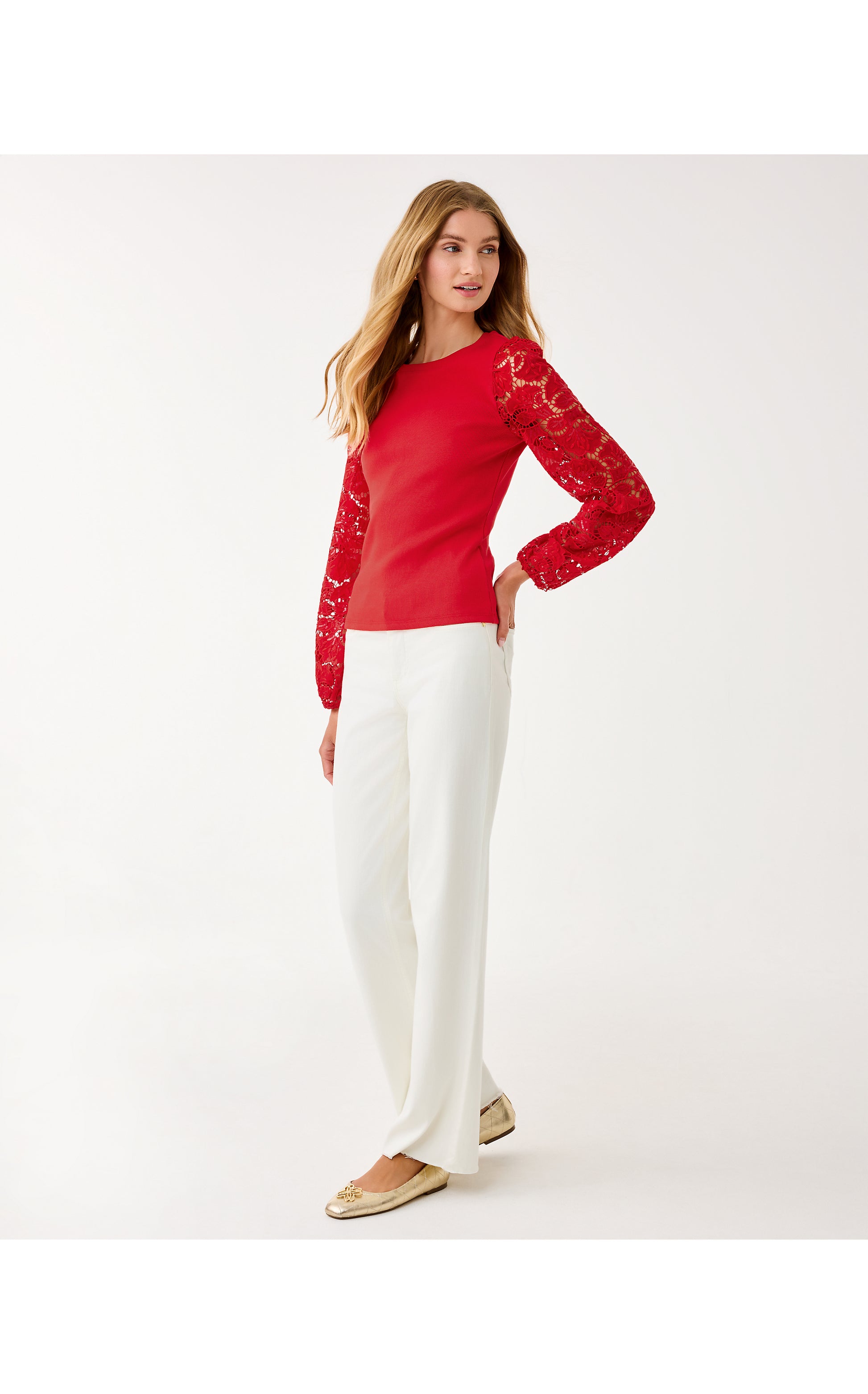 - Straight fit top with a crew neckline and long unlined lace sleeves.