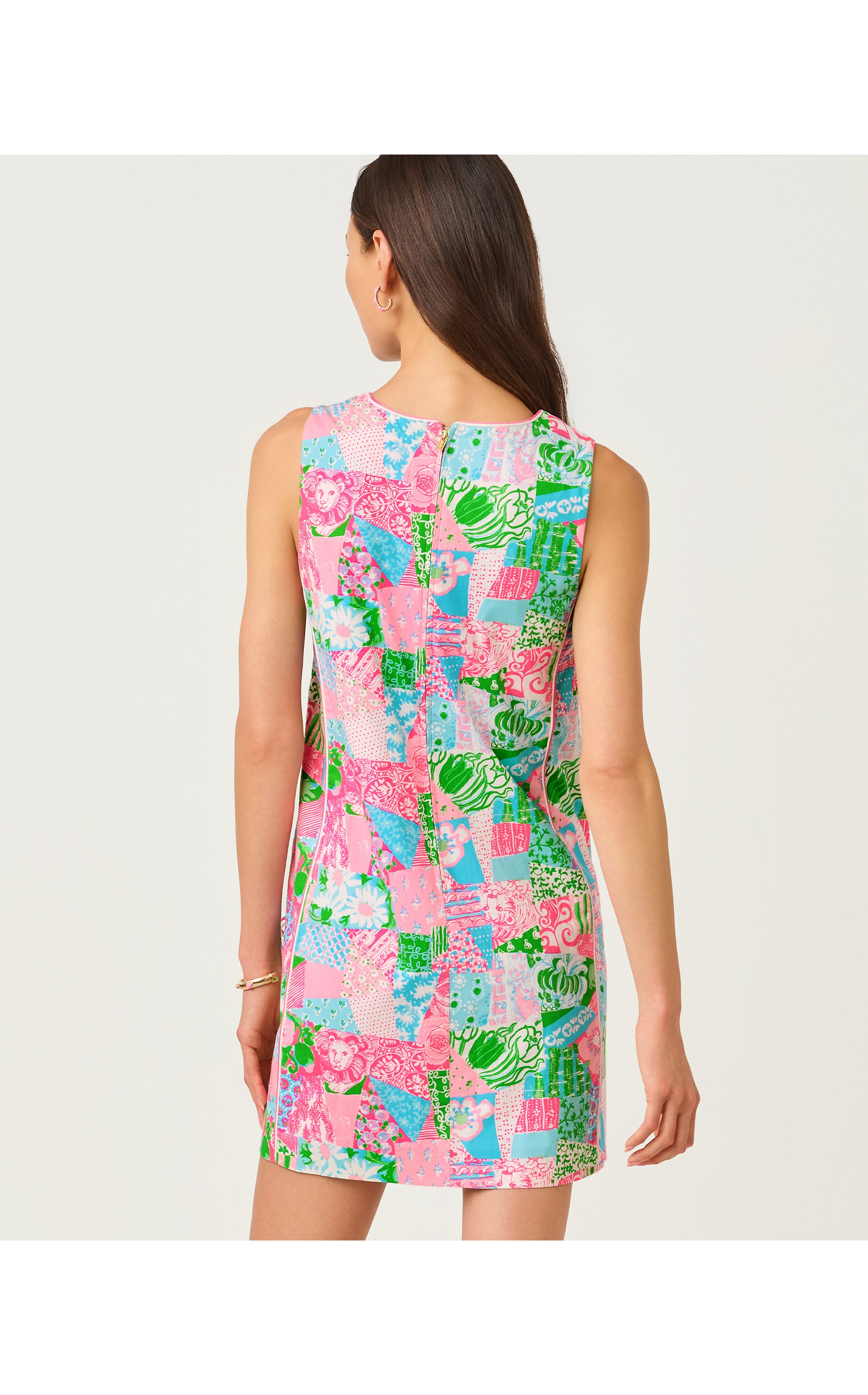 - Straight fit shift dress with side panels and piping detail with a bow.