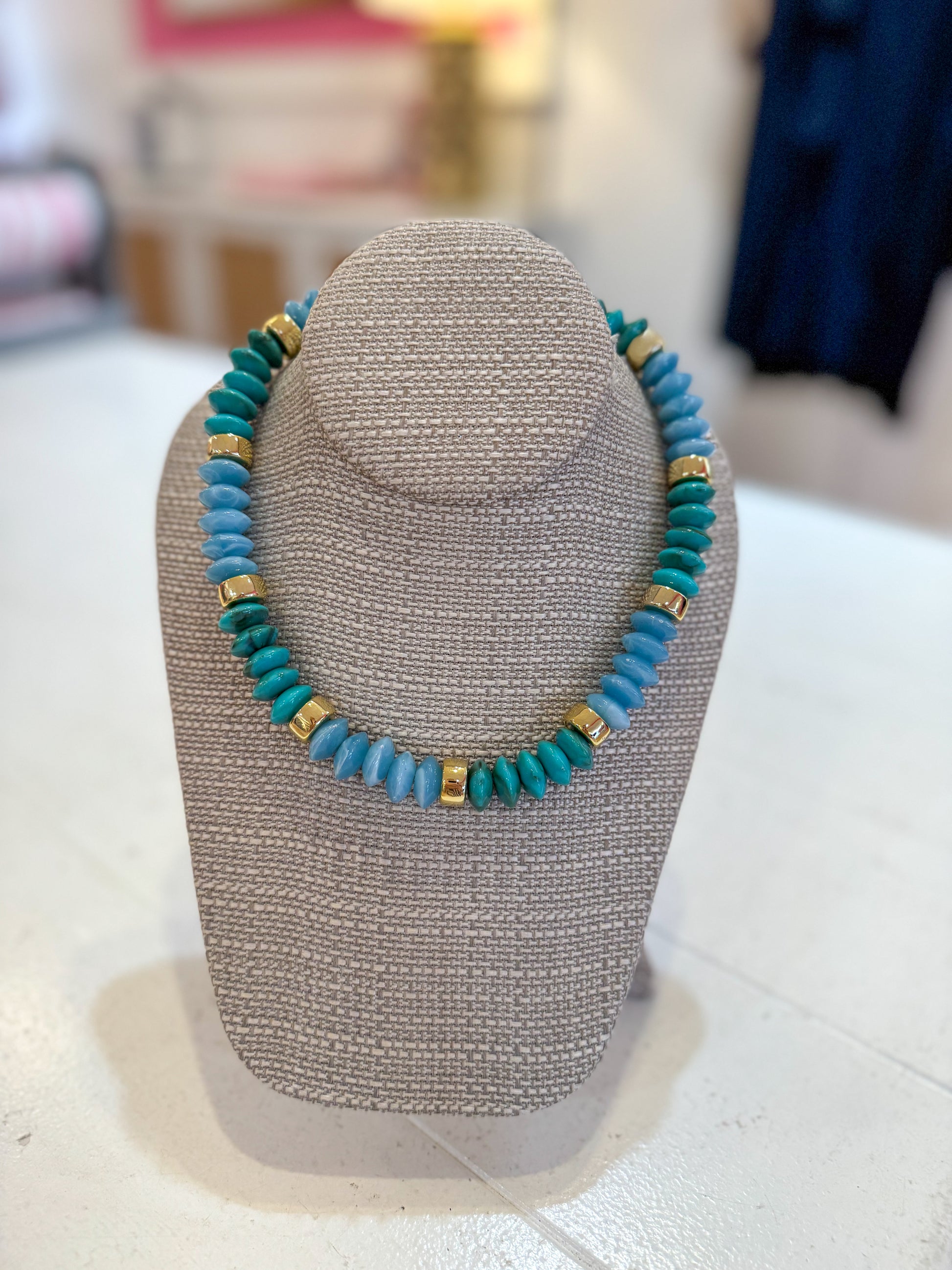 Ready to take your outfit to the next level? The Turquoise Day Dream Beaded Necklace will add the perfect pop of color to your outfit. Beads have a clear coating to protect to the color.